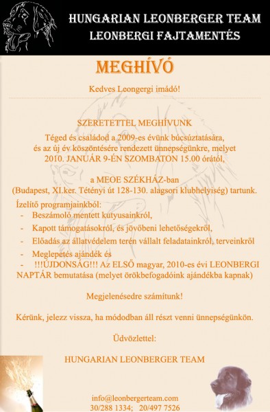 SzeretnĂ©nk meghĂvni TĂ©ged Ă©s Kedves Családod a 2010 január 9-i Ă©vzárĂł Ă©s egyben Ă©vnyĂtĂł bulinkra!