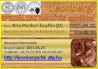 A HLT is jelen lesz a Leonbergi speciál kiállĂtáson Ă©s szeretne meghĂvni TĂ©ged Ă©s kedves családod 2011. 06. 13-án Komáromba..