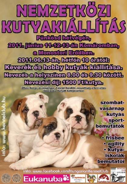 2011.jĂşnius 13-ĂĄn hĂŠtfĂľn KEVERĂK ĂS HOBBY KUTYĂK KIĂLLĂTĂSA. NevezĂŠs a helszĂnen 8.00 ĂŠs 9,30 kĂśzĂśtt. NevezĂŠsi dĂj : 1500Ft/kutya