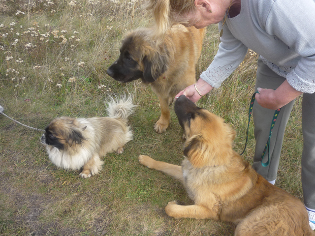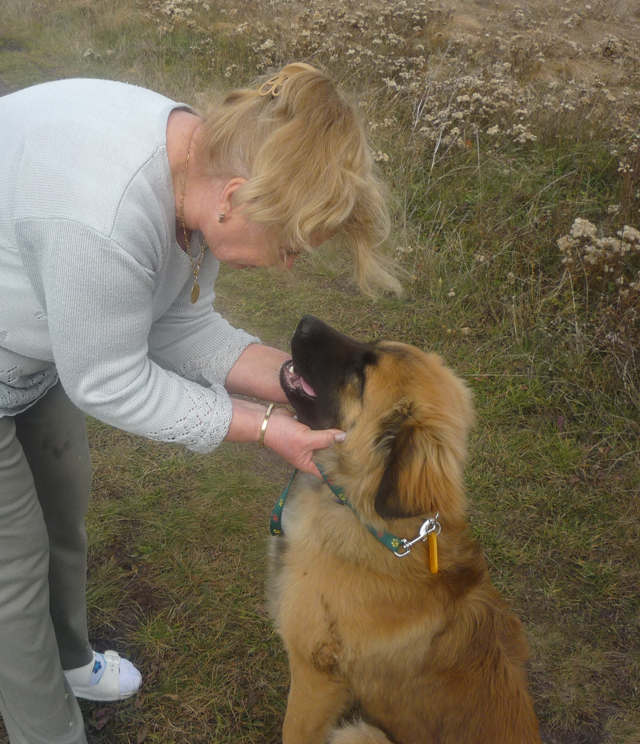 Szinte egy hét sem telt el, máris több kedves érdeklődő jelentkezett, hogy szeretné Barnust megnézni. Mária és lánya, Babi már úgy érkeztek, hogy el is viszik őt, mint utólag kiderült! :) Sokat beszélgettünk a gazdijelöltekkel, akik számtalan kutyás élményt megosztottak velünk és eközben világossá vált, hogy ők lesznek az IGAZIAK! Vállalták, hogy Barnust ivartalaníttatják, hogy már náluk lábadozhasson és mi beleegyeztünk. Másnap vittük új otthonába, ahol nagy szeretettel várták, a családból többen is eljöttek, hogy lássák az új lakót. A családnak már van egy leonbergi szukája és egy idős palotapincsije, akik először bizalmatlanul és nem túl nagy örömmel méregették a jövevényt. A közeli réten összeengedtük a kutyusokat, akik így már nagyobb bizalommal fordultak egymás felé, később a kertben pedig már játszottak is együtt.